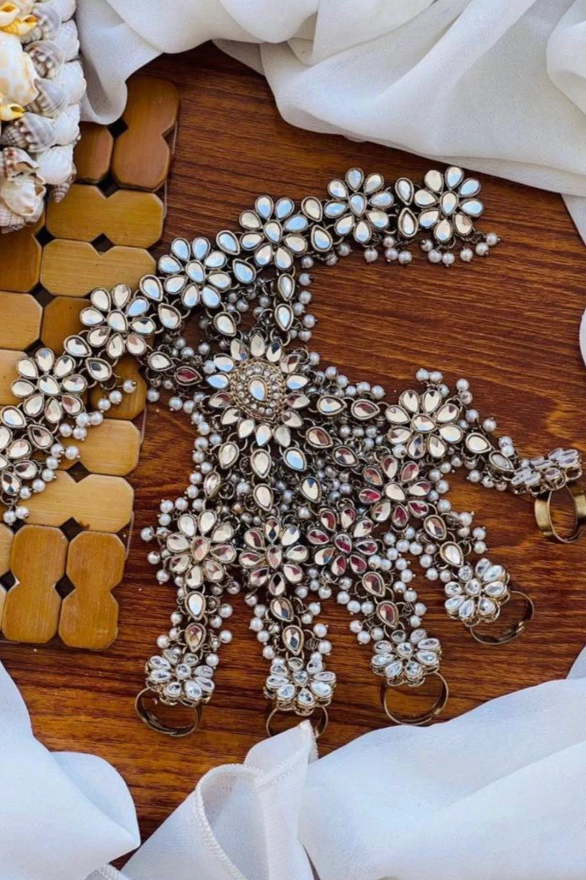 Perfect for any occasion, especially for brides! This Pakistani/ Indian Mirror Ring Hand Bracelet Includes 1 Bracelet with 5 ring holes as pictured.