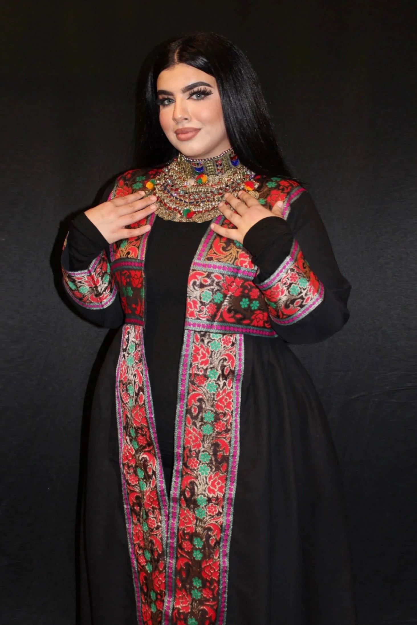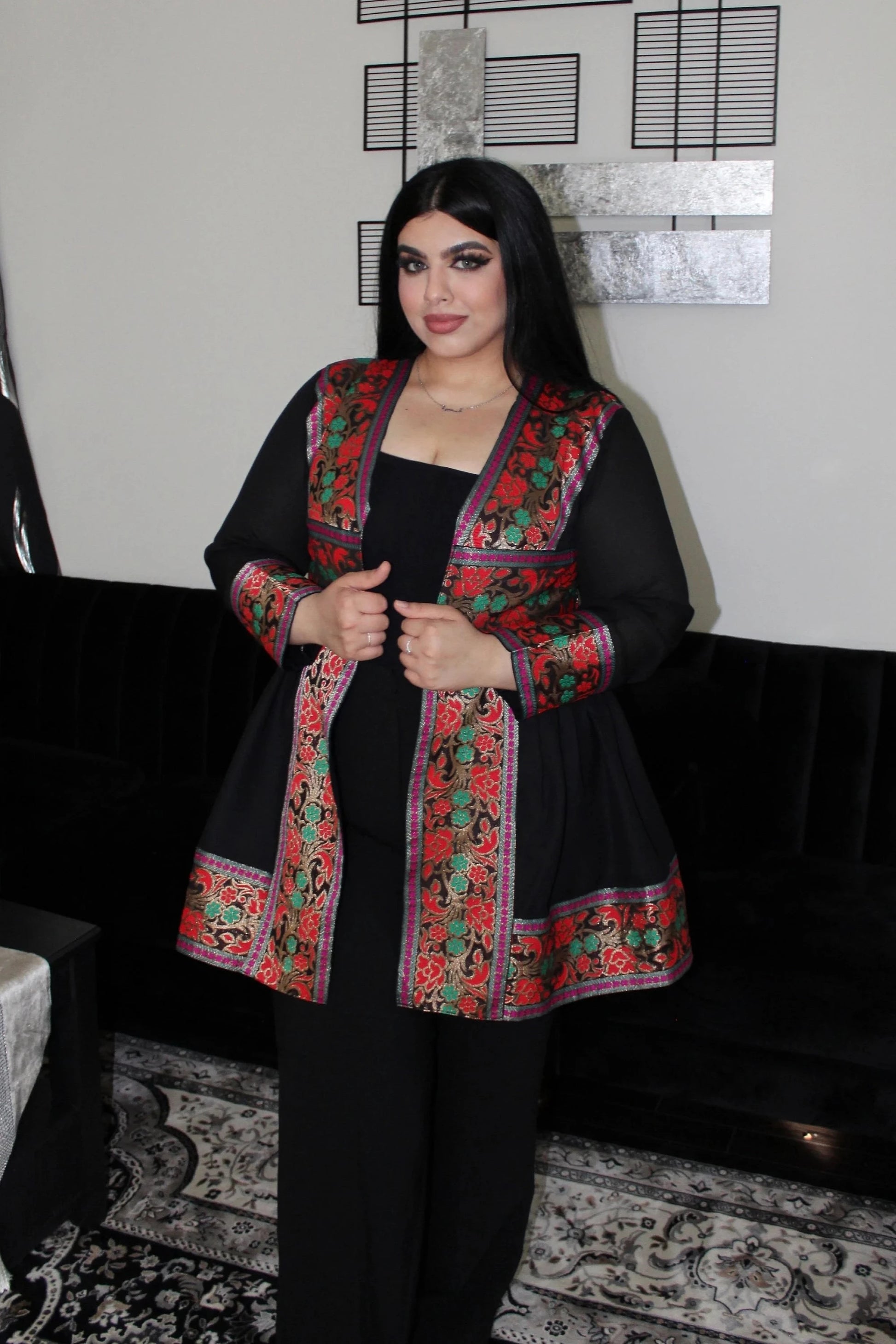 What's not to love? Style this with pants and a top or a dress of your choice. Only chapan included, dress and jewelry not included.
