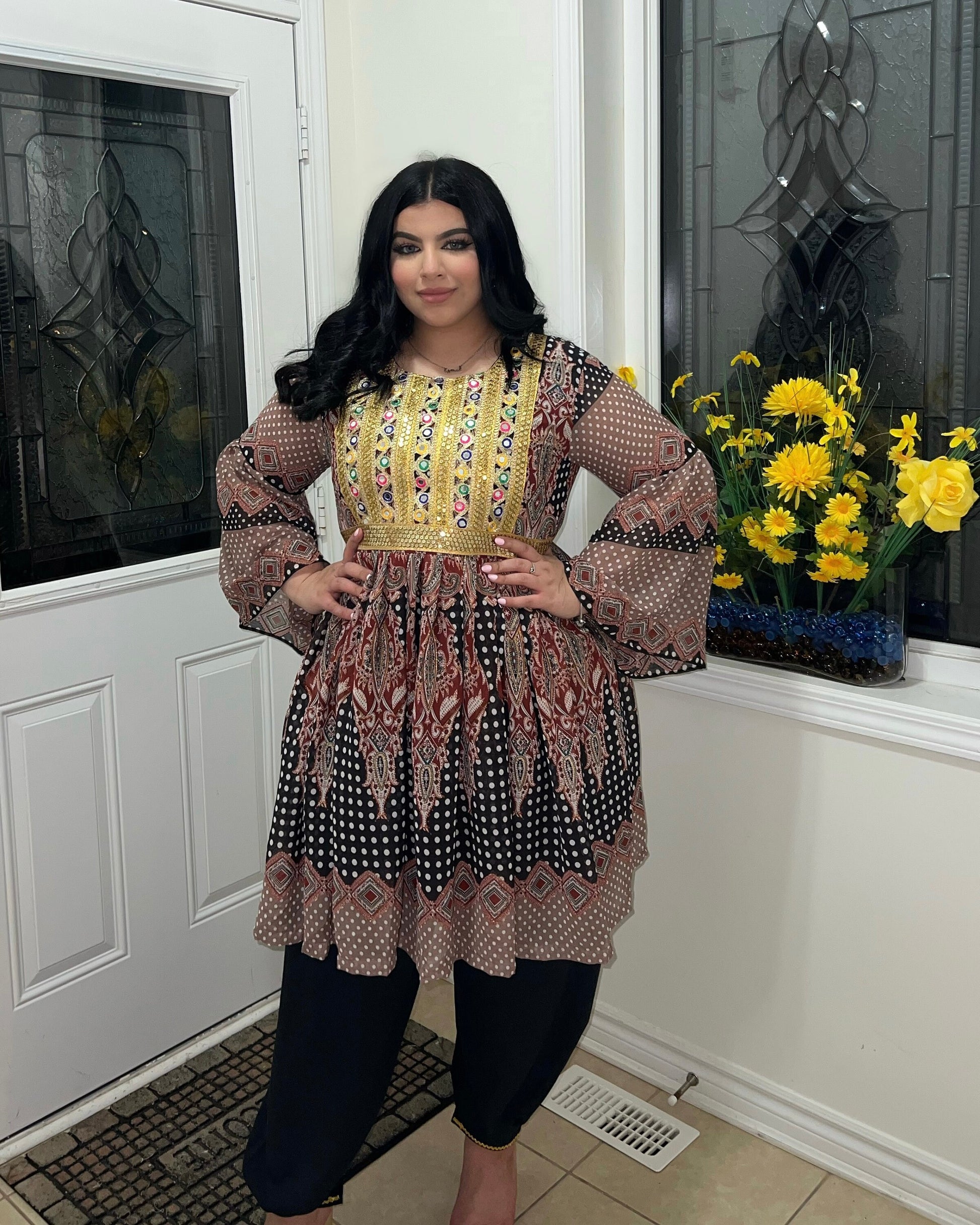 Perfect for any occasion! This Afghan one-size Dress is available in a short and maxi dress that features long sleeves, a figure-flattering fit with a tieable belt (kamarband) in the back to accentuate your curves.