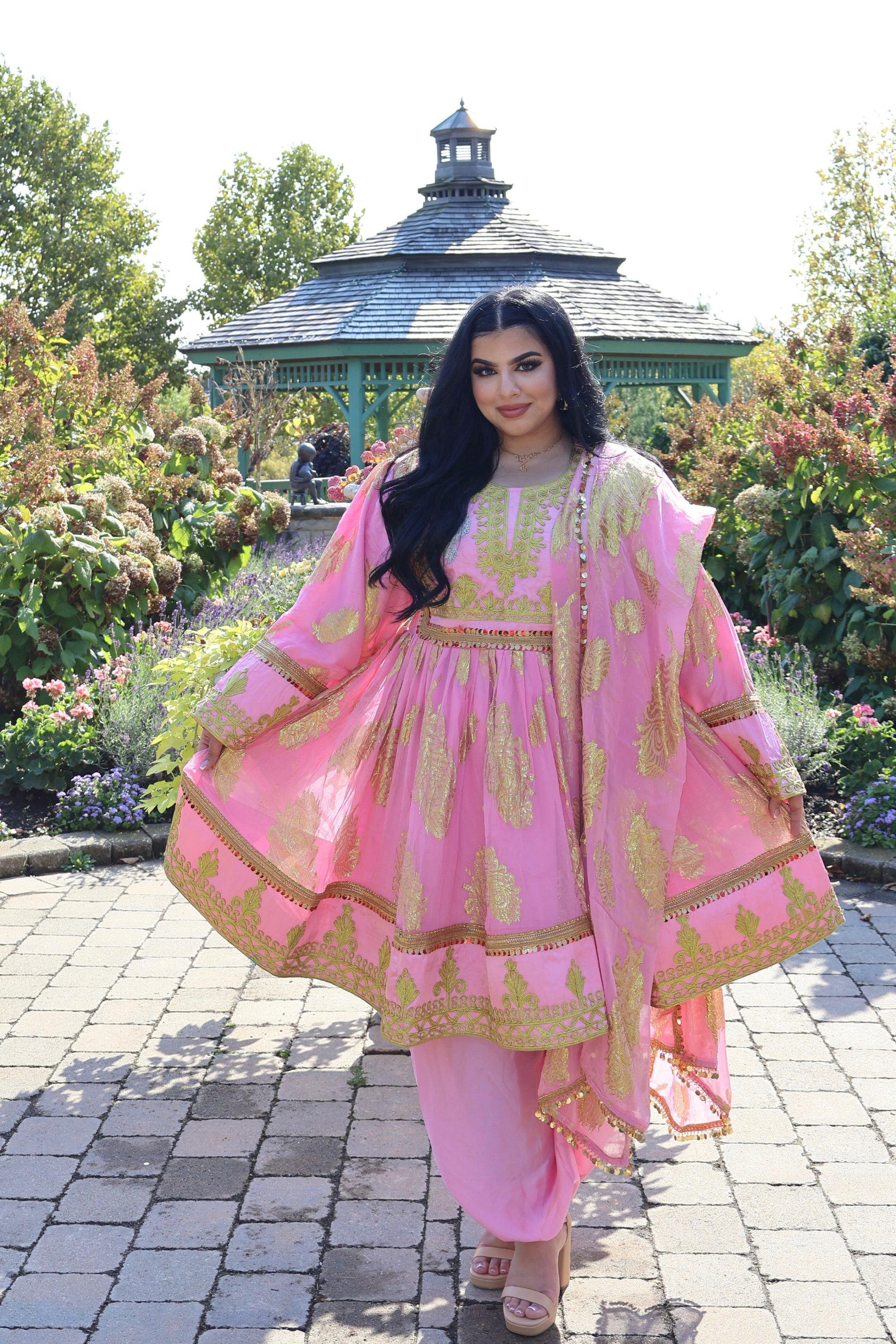 Perfect for any occasion! This Afghan one-size short Dress that features a 2 layer dress with bell sleeves, a figure-flattering fit with a tieable belt (kamarband) in the back to accentuate your curves.