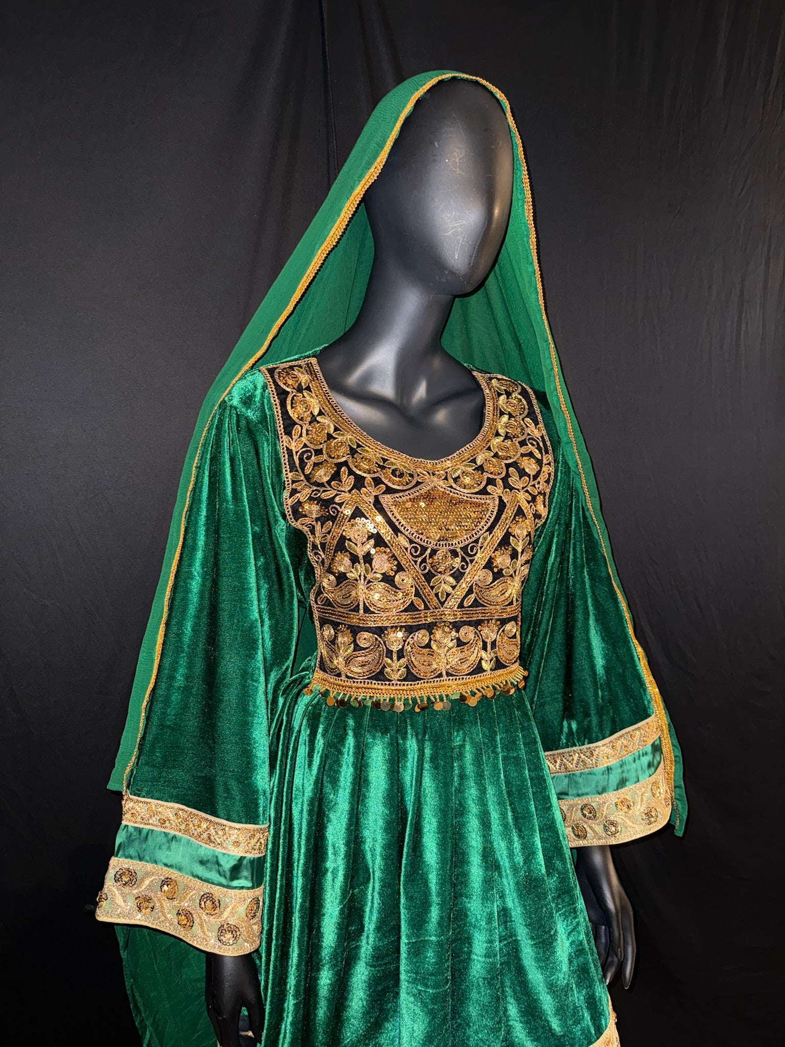 Perfect for any occasion! This Afghan one-size Dress is available in a short dress with pants that features long bell sleeves, a figure-flattering fit with a tieable belt (kamarband) in the back to accentuate your curves.
