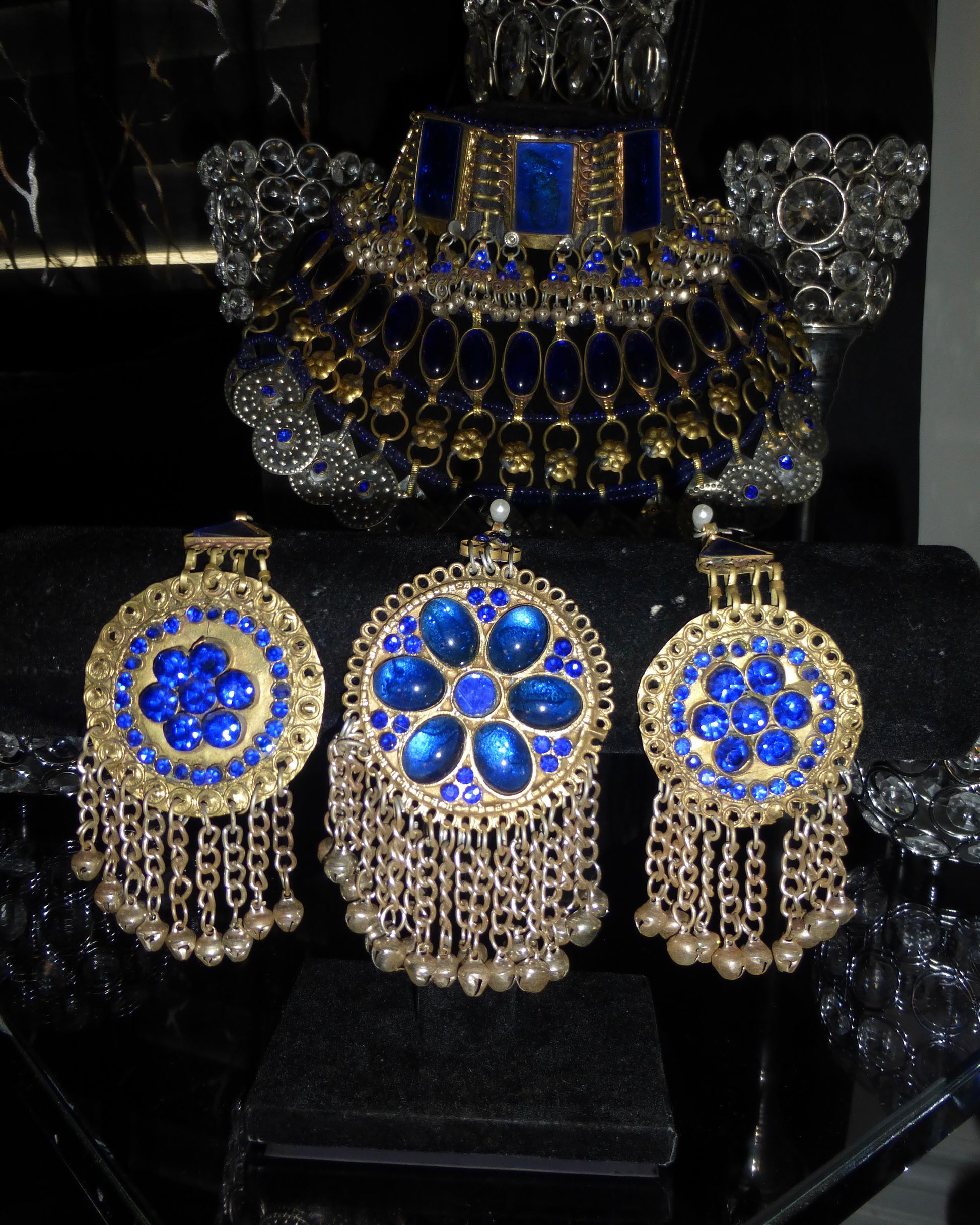 Perfect for any occasion! This Jewelry set includes a headpiece, necklace, and a pair of earrings. This set is sold as is and is a Vintage Afghan Jewelry Set.